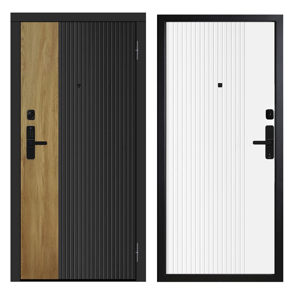 - Замковая система: Умный замок CBA SL 2 с камерой, сканером отпечатков пальцев, функцией удаленного управления через приложение (WI-FI, Bluetooth)/Дополнительный цилиндровый замок