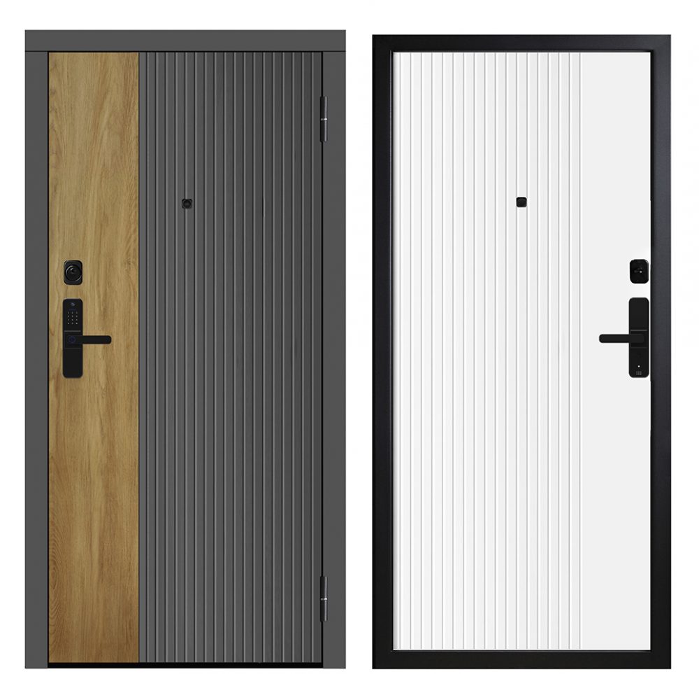 - Замковая система: Умный замок CBA SL 2 с камерой, сканером отпечатков пальцев, функцией удаленного управления через приложение (WI-FI, Bluetooth)/Дополнительный цилиндровый замок