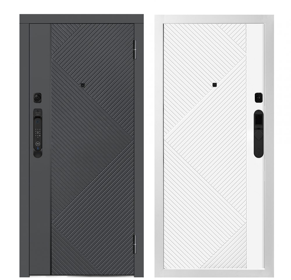 - Замковая система: Умный замок CBA PSL 1 с FACE ID камерой, сканером отпечатков пальцев, функцией удаленного управления через приложение (WI-FI, Bluetooth)/Дополнительный цилиндровый замок