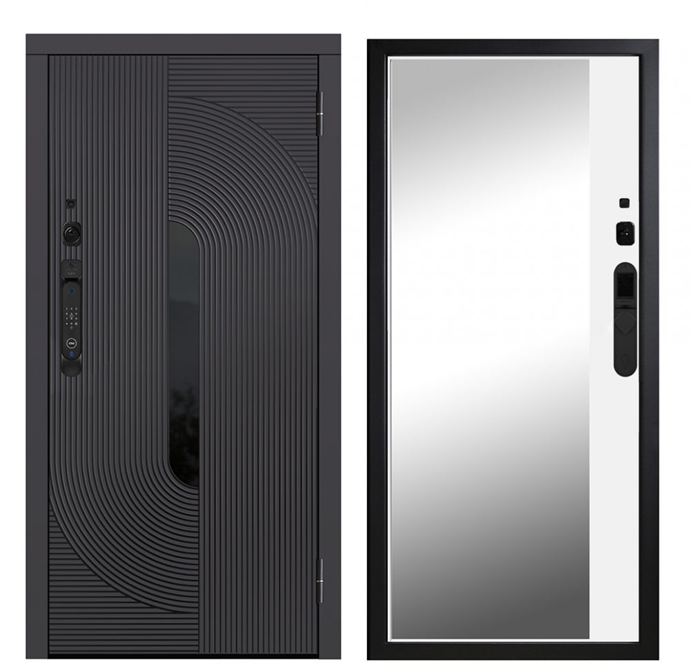 - Замковая система: Умный замок CBA PSL 1 с FACE ID камерой, сканером отпечатков пальцев, функцией удаленного управления через приложение (WI-FI, Bluetooth)/Дополнительный цилиндровый замок