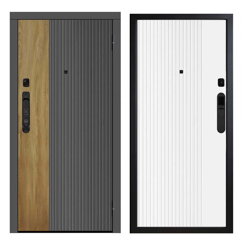 - Замковая система: Умный замок CBA PSL 1 с FACE ID камерой, сканером отпечатков пальцев, функцией удаленного управления через приложение (WI-FI, Bluetooth)/Дополнительный цилиндровый замок
