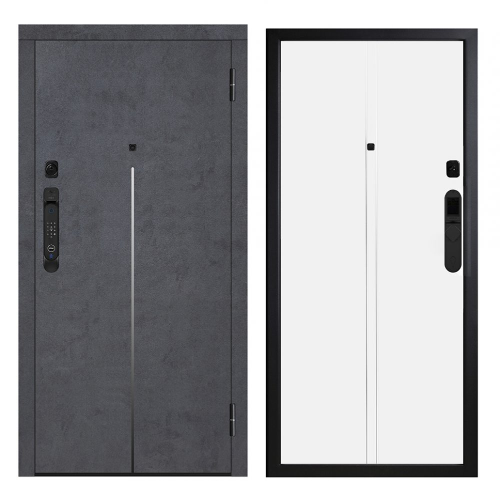 - Замковая система: Умный замок CBA PSL 1 с FACE ID камерой, сканером отпечатков пальцев, функцией удаленного управления через приложение (WI-FI, Bluetooth)/Дополнительный цилиндровый замок