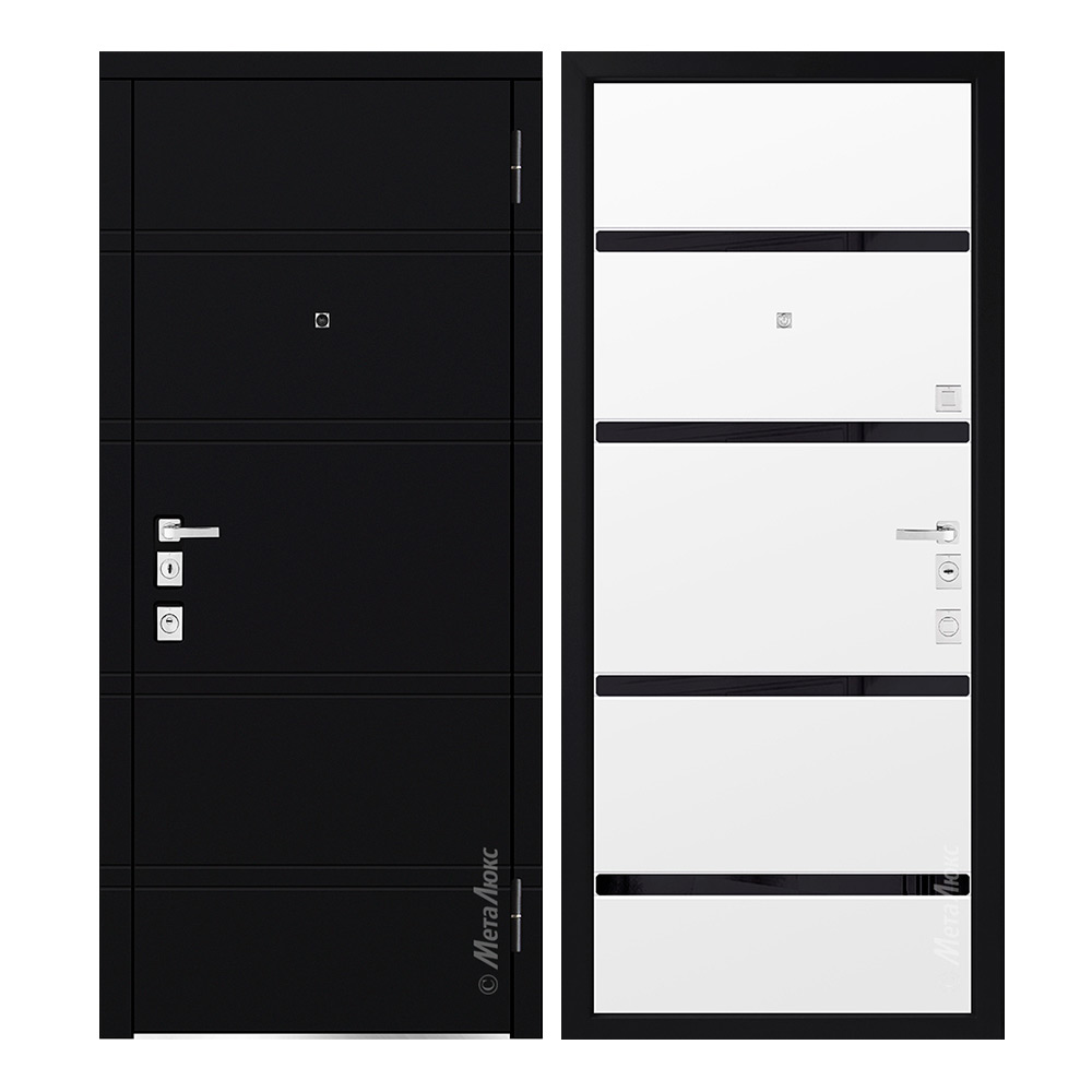 Внутренняя панель: Фрезерованная панель МДФ высокой плотности 12 мм, покрытие SoftVelvet, цвет «Белый», №17, вставки из чёрного глянцевого стекла