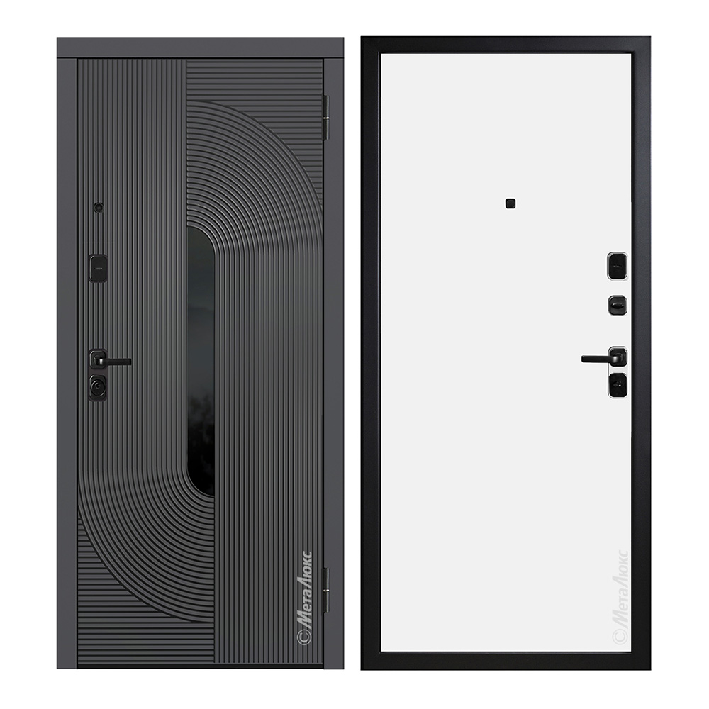 Внешняя панель: Панель МДФ 16 мм, пленка №78, цвет «Графит», вставка из черного глянцевого стекла
