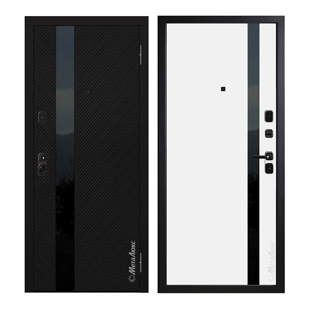 Внутренняя панель: Панель МДФ 16 мм, пленка SoftVelvet, цвет «Белый» №17, вставка из черного глянцевого стекла