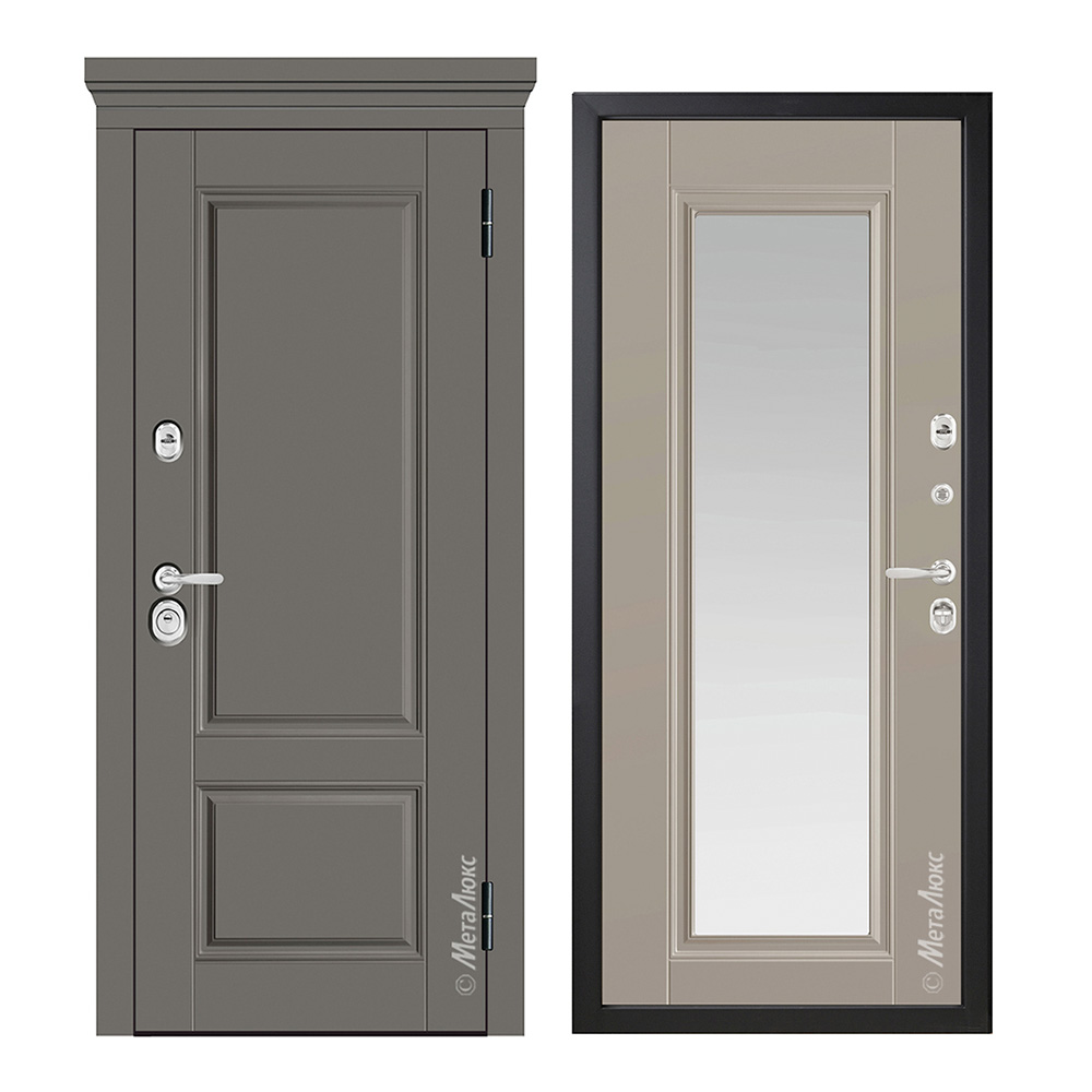 Внутренняя панель: МДФ 12 мм, покрытие SoftVelvet, цвет «Светло-серый» « №64», вставка зеркало(серебро)
